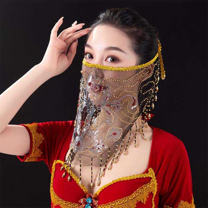 ベリーダンス フェイスベール マスク 顔 スパンコール キラキラ レース ベール アラビアン ナイトマスク アクセサリー ステージ衣装 舞台衣装