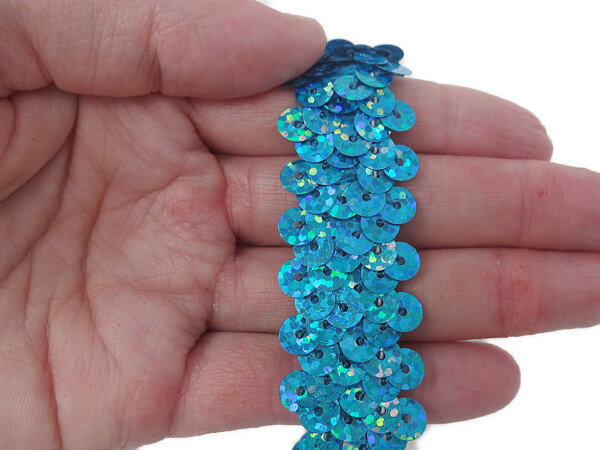 キラリ手芸部 No.1177_スパンコールブレード(ラメ有り)青色(ブルー)幅2cm×3m巻き(手芸用) シークイン Sequin